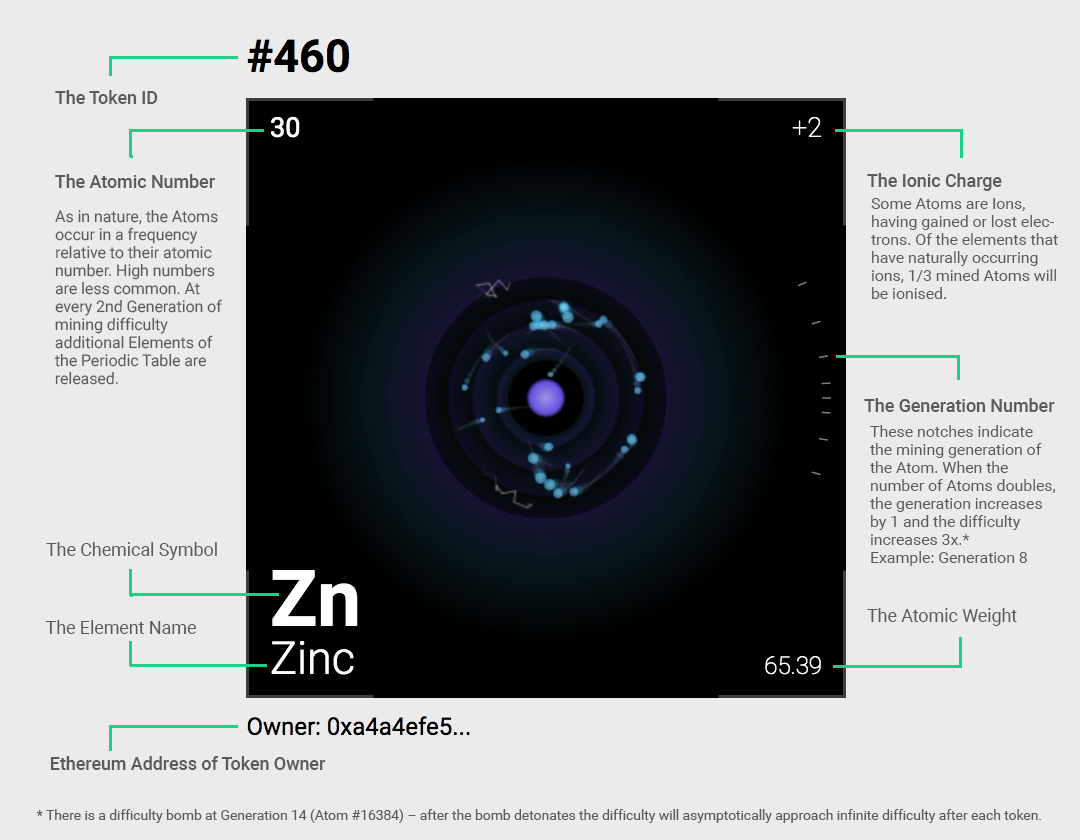 With every new generation, the mining difficulty gets three times harder. This means Atoms will take on average three times longer to mine. Although there is no hard cap on how many Atoms can be minted, there is a difficulty bomb at generation 14 (Atom #16384) – after the difficulty bomb detonates the difficulty will increase after every Atom, asymptotically approaching a level of infinite difficulty. This gives an approximate range for the eventual token cap, but makes allowances for enthusiastic miners, or future technological advancement in mining hardware.